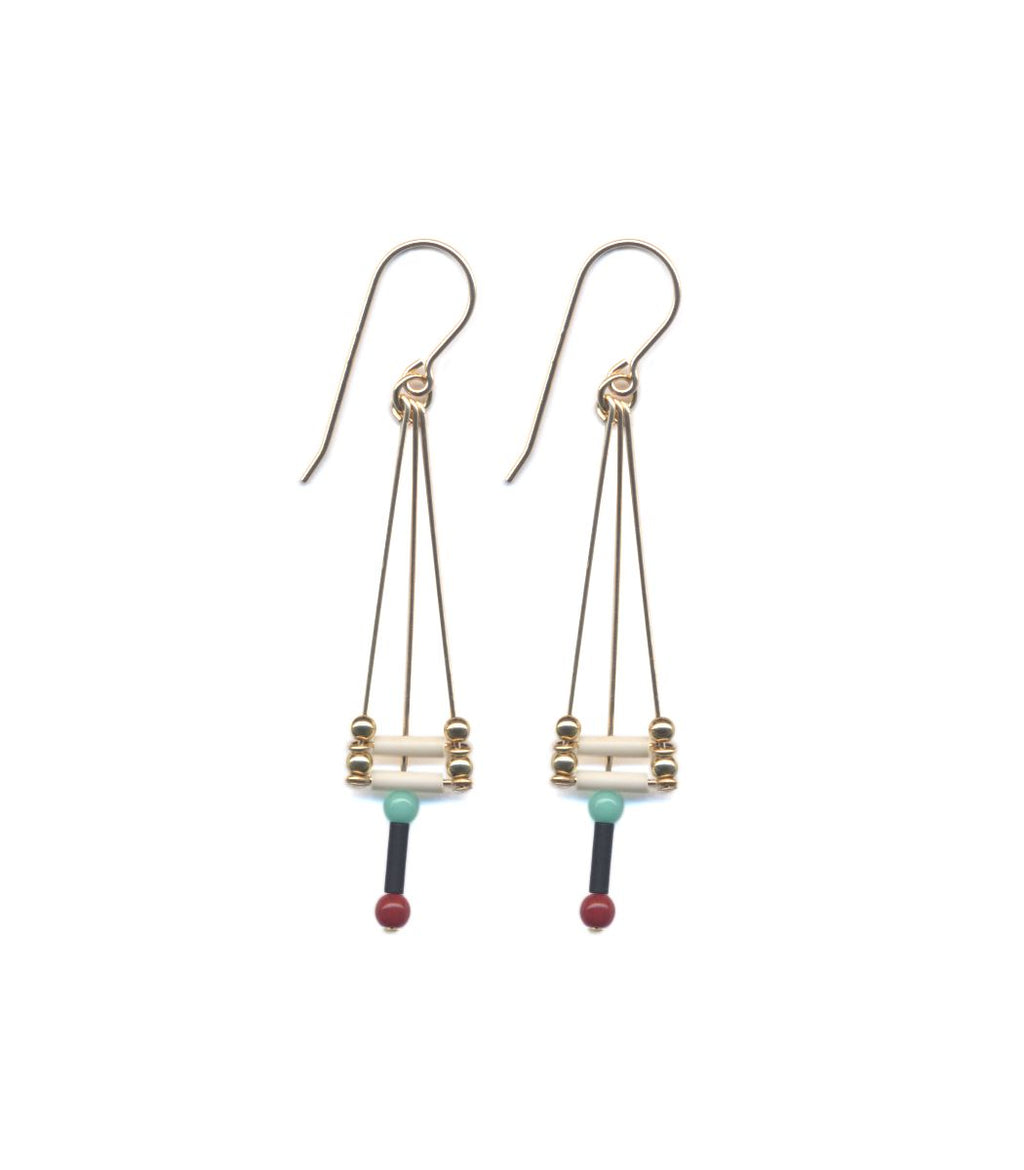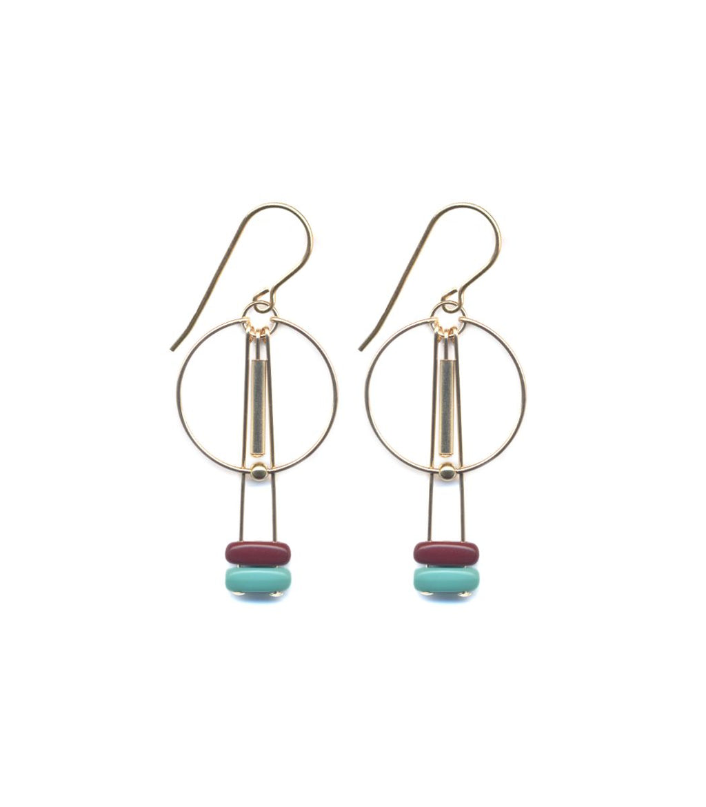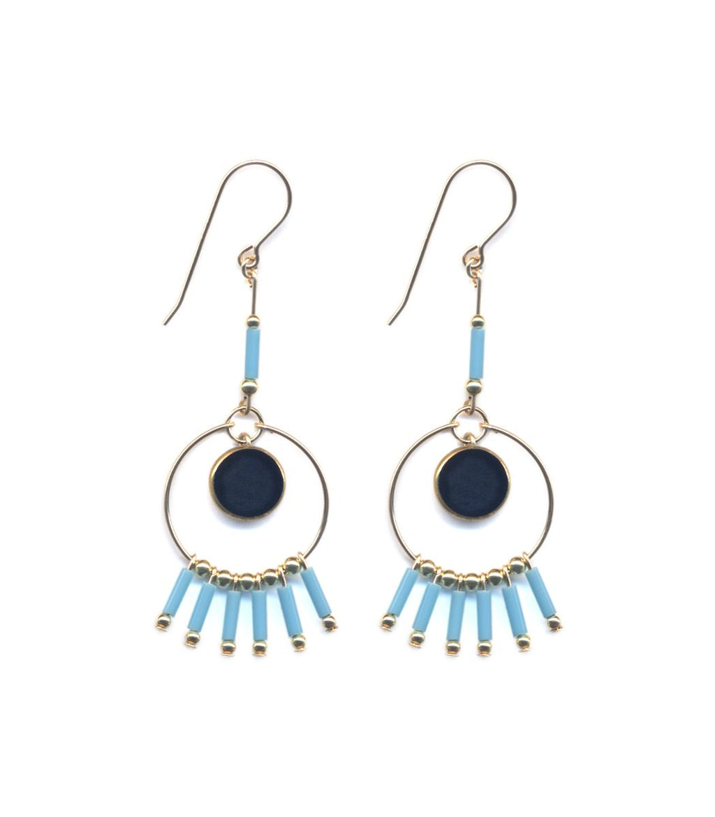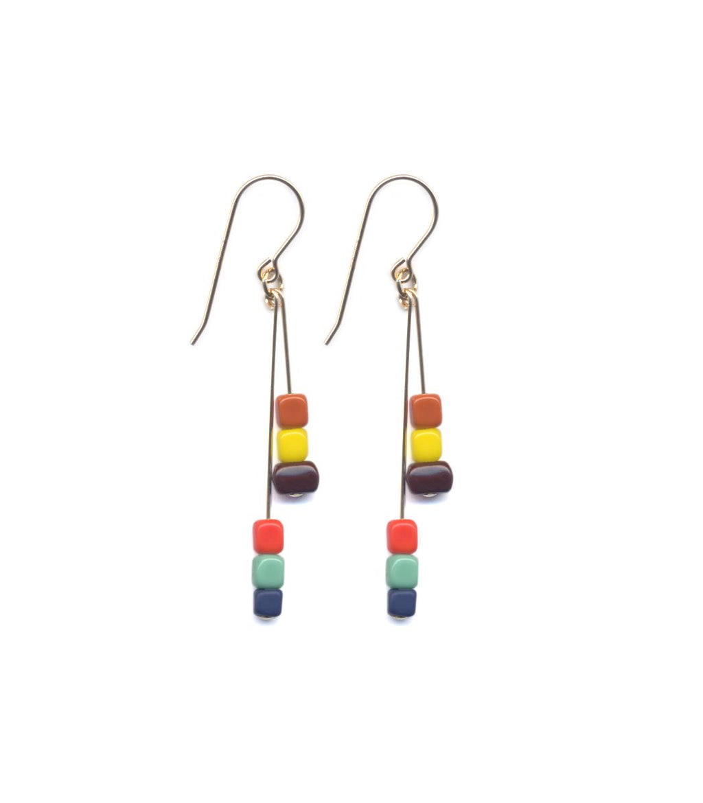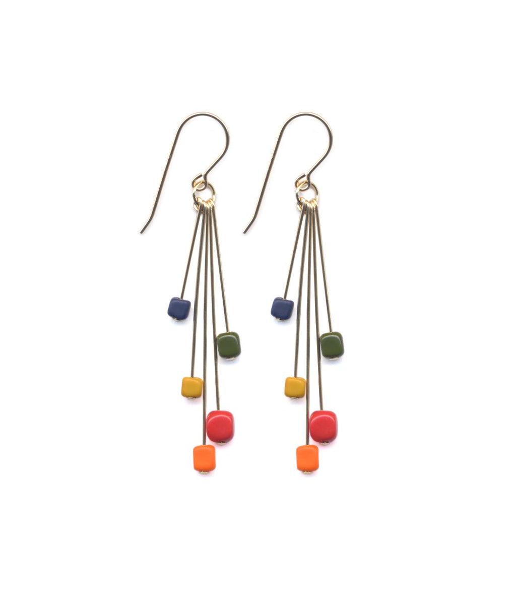 E1693 Bright Rectangle Fringe Hoop Earrings